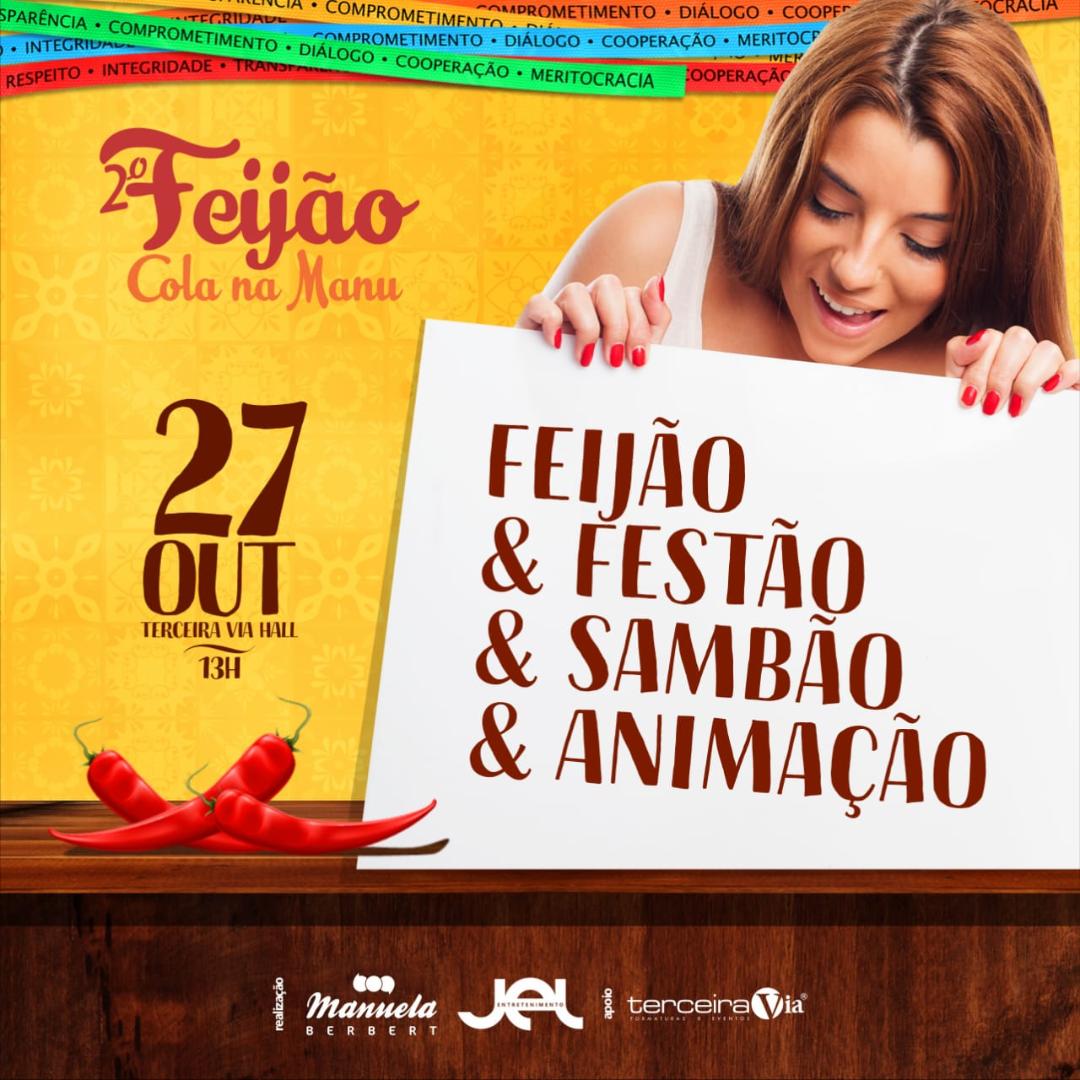 “As atrações, valor do ingresso e pontos de venda serão divulgados na próxima semana. Estamos empenhados em transformar o Feijão #ColaNaManu em um grande evento, já que a marca hoje é bastante conhecida e vem em uma crescente notável, principalmente depois do Arraiá deste ano”, completa Edinho Filho, na JEL Entretenimento, parceiro do evento.