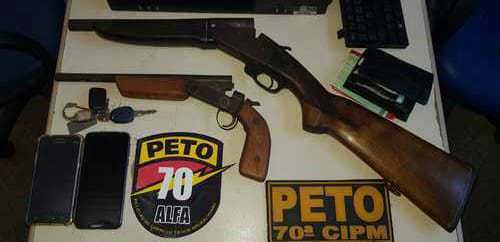 Foram presos ontem, (14), cinco elementos em um veículo Uno no distrito de Castelo Novo, em Ilhéus. A operação foi conduzida pela guarnição Alfa do Peto 70, dos soldados composta por Valdir, Neves e Everaldo Brandão. Com os indivíduos foram encontrados 1 espingarda calibre 12, 1-espingarda calibre 44 e três celulares.