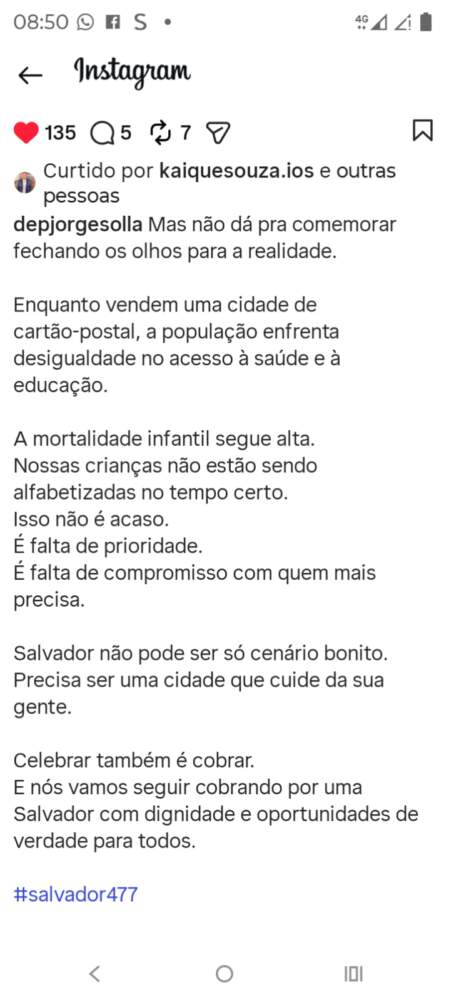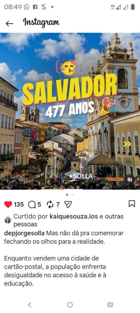 Início/Artigos/Deputado Federal, Jorge Solla, em suas redes sociais alerta durante aniversário de Salvador: “Enquanto vendem uma cidade de Cartão Postal, a população enfrenta dificuldades na Saúde e educação”, alertou ArtigosBahiaDestaquesGeralIlhéusItabunaNotícias Deputado Federal, Jorge Solla, em suas redes sociais alerta durante aniversário de Salvador: “Enquanto vendem uma cidade de Cartão Postal, a população enfrenta dificuldades na Saúde e educação”, alertou Ilhéus Noticias30 de março de 20260 Ilhéus Noticias30 de março de 20260 Compartilhar Facebook X Linkedin WhatsApp Telegram Imprimir